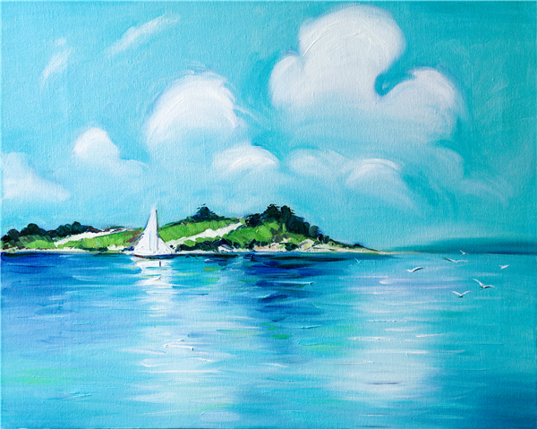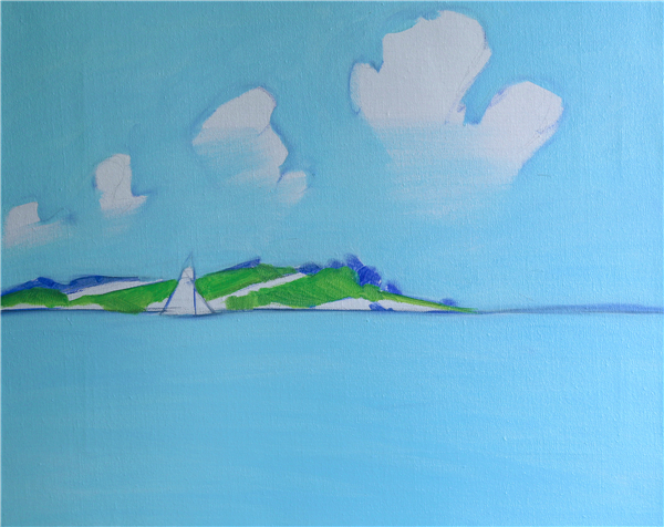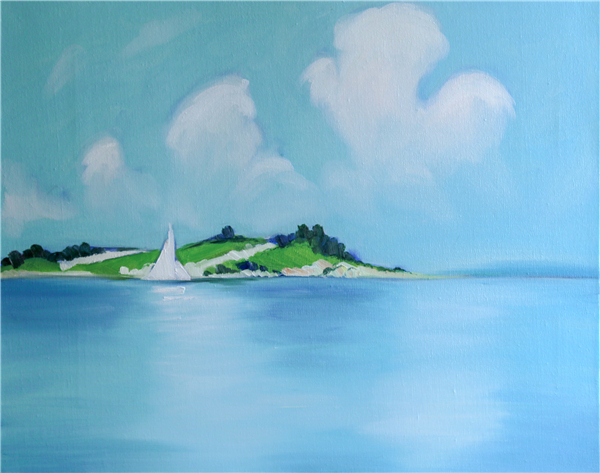 蓝天,白云,小岛,帆船,海洋···