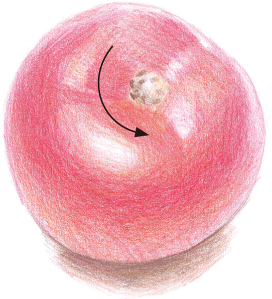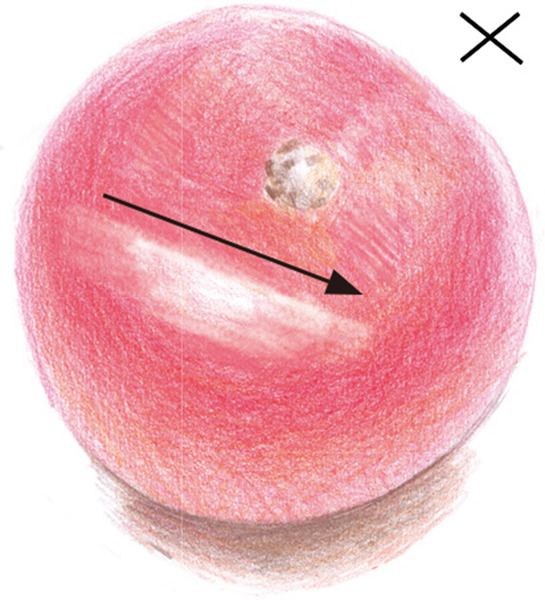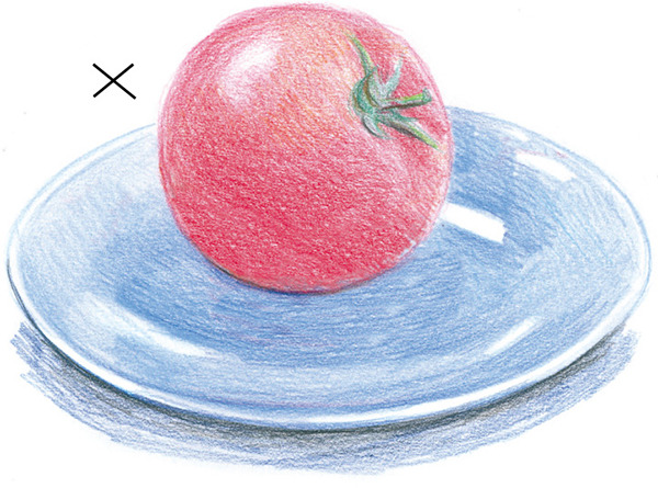 如果没有考虑到西红柿的球形而把高光画成一个笔直的形状, 则显得不自然。