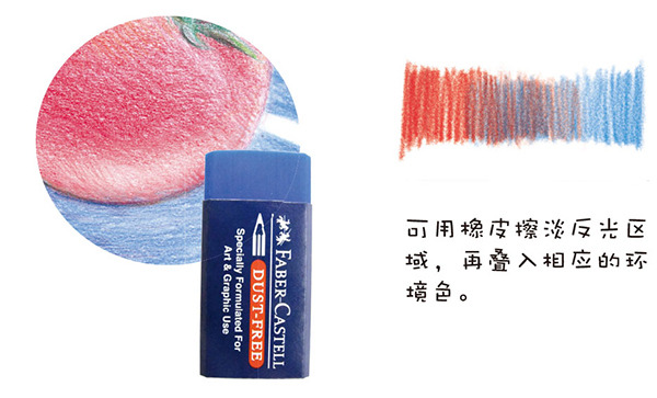 STEP6:用46号朱红色继续叠涂西红柿,高光部分也轻轻涂上一层,用笔平滑以表现西红柿的质感。然后用31号大红色加深暗部。