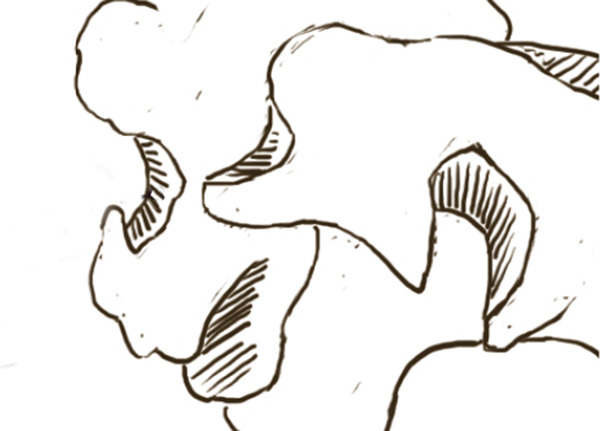 要正确画出叶子翻折时产生的线条。并且翻折部分会产生阴影,要注意加深刻画。